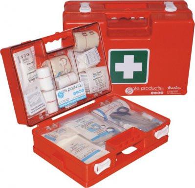 Koffer van slagvaste ABS kunststof, inclusief wandhouder. Koffermodel in tweeen deelbaar. Afgeschermd met transparante afdekplaten. Losse vakindeling. Afmetingen 27x19x11cm. Verbandkoffer is leverbaar in de kleuren: oranje, wit en groen. De verbandtrommel wordt compleet geleverd met B inhoud uitgebreid.